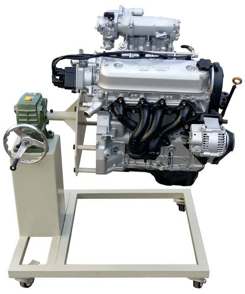 2.采用减速翻转机构,可使发动机任意角度旋转,并能任意位置锁止,便于学生从不同的角度进行拆卸和装配。